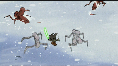 Йода, з якоїсь причини, знаходиться на кораблі сенатора Амідали. Він відчув трагедію на планеті Ілум. Щоб змінити напрям корабля, він використав свої джедайські хитрощі, щоб загіпнотизувати капітана Тайфо. І дійсно, на планеті на нього чекала засідка дроїдів.