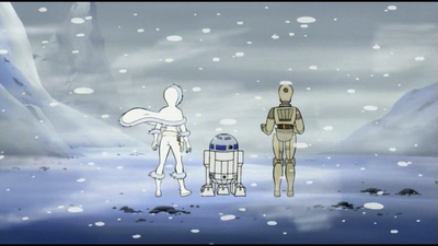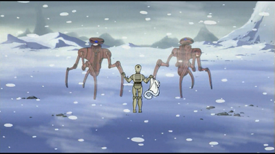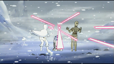 Термальний детонатор, який з легкістю перетворює бойового дроїда на купу брухту, лише трохи присипає снігом головного героя.
