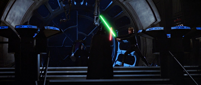На борту Зірки Смерті ІІ Імператор намагається переманити на свій бік Люка Скайуокера. Люк нападає на нього, але Дарт Вейдер захищає його. Йому вдається дізнатися, що у Люка є сестра, після чого Люк перемагає Вейдера. Імператор атакує Люка блискавками Сили, але з останніх сил Дарт Вейдер рятує його, хоча і отримує смертельні поранення. В цей час група диверсантів знищує щит і винищувачі знищують реактор. Зірка Смерті ІІ вибухає, і це символізує кінець Імперії.
