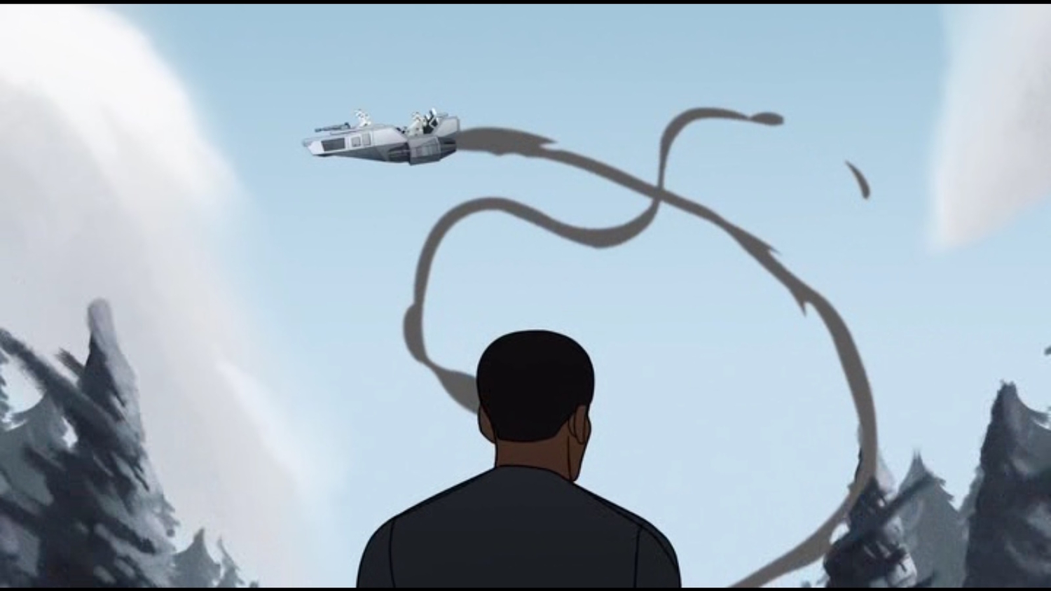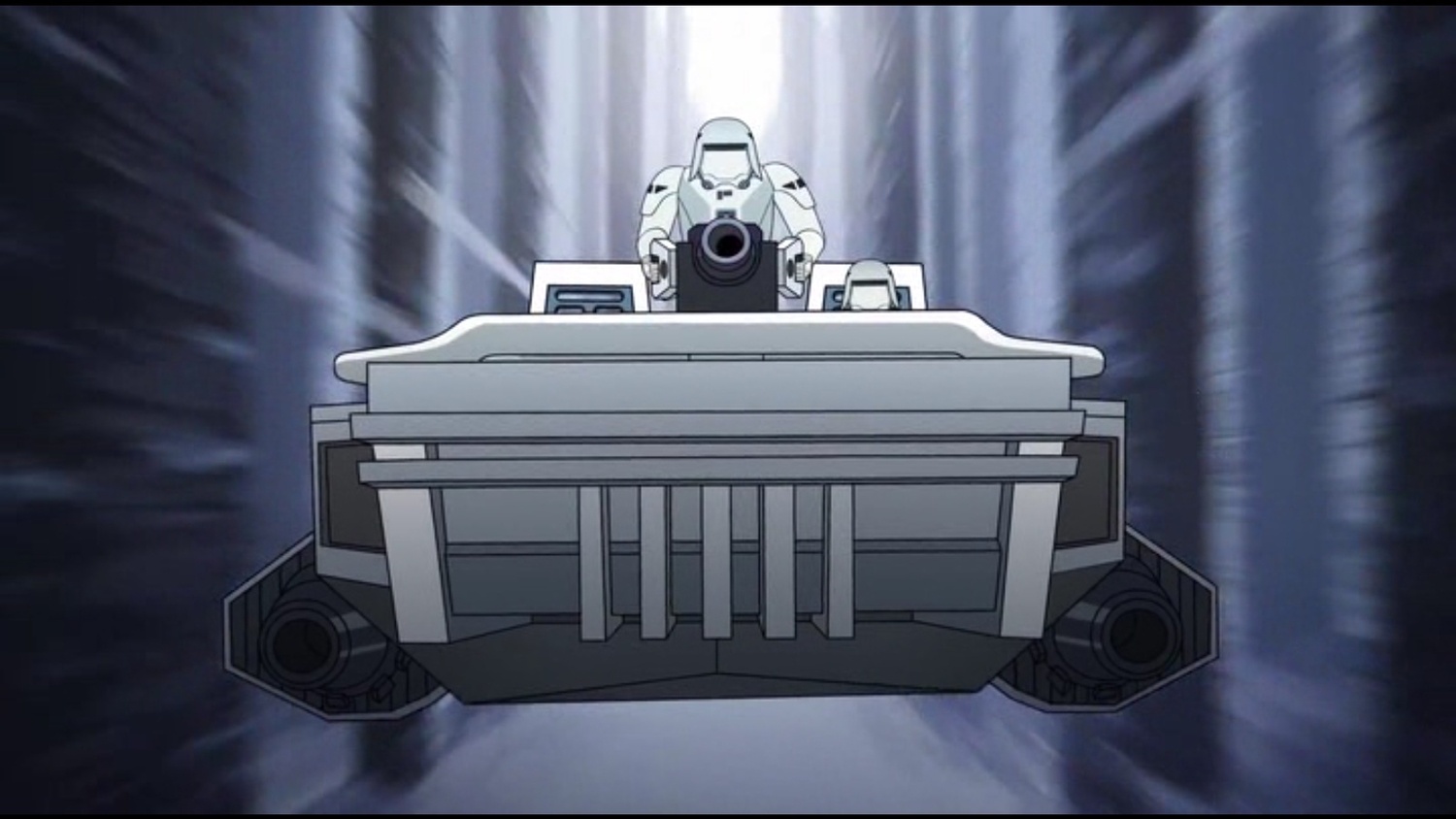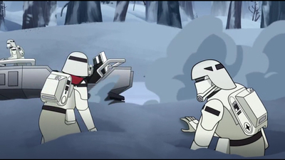 Рей і Фінн тікають від штурмовиків з бази Зоревбивця. Спочатку Рей стріляє а Фінн керує, а потім вони з'ясовують, що навпаки виконувати їхню роботу в них виходить краще. Їм вдається збити три легкі піхотні багатоцільові техніки і втекти.