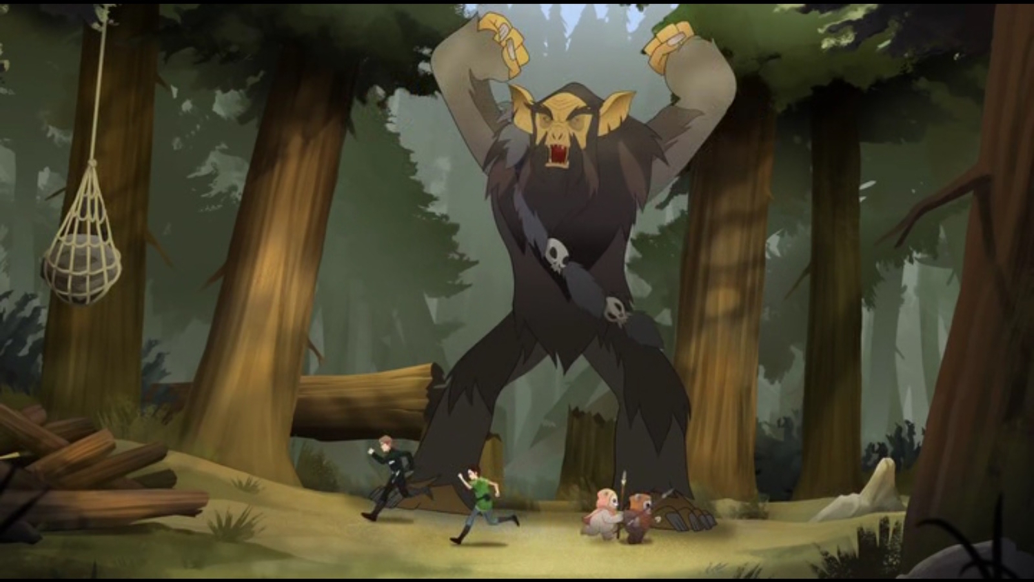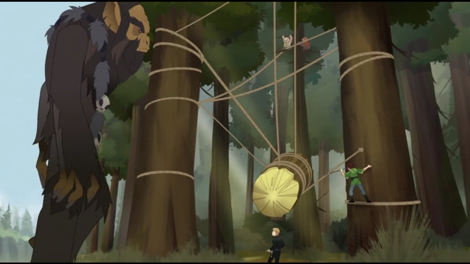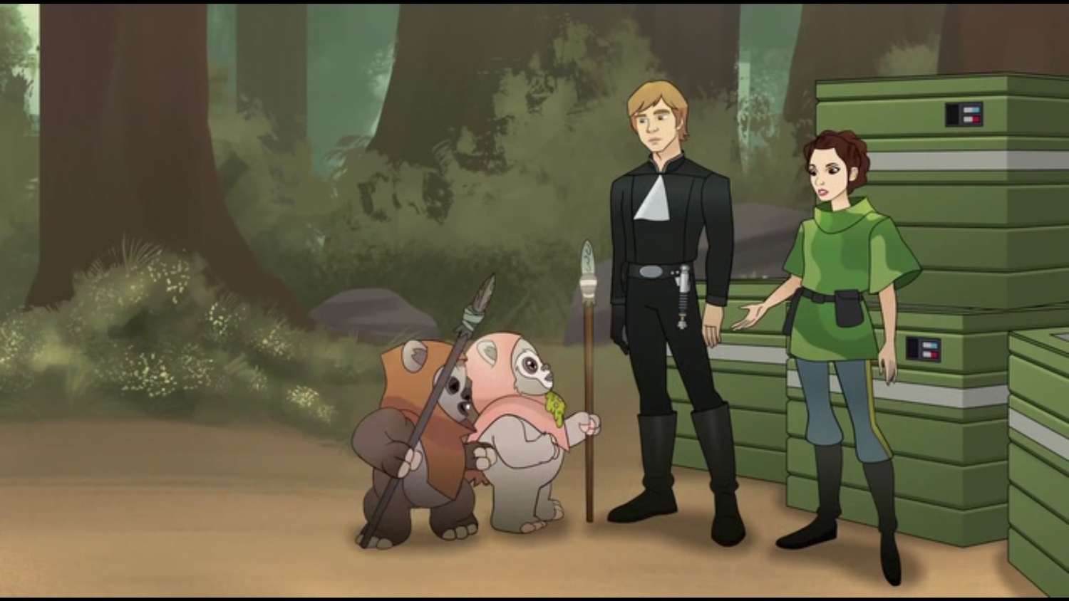 Уікет і Кніса підбігають до Люка і Леї і просять допомогти їм відновити пастки. Питання "Навіщо?" пролунати тому, що на них Горакс. Евокі і Лея готують пастку, в той час як Люк заманює Горакса в неї. У Леї не виходить перерізати мотузку списом, тому Люк кидає їй свій меч. Вона перерізає мотузку і пастка скидає Горакса в болото.