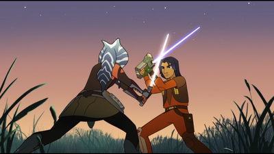 Асока підходить до Езри і просить показати меч. Вона питає його, наскільки він на нього покладається, а потім викидає кристал Езри і починає його атакувати, змушуючи концентруватися на пошуку під час битви. Езра розуміє урок, знаходить кристал і лагодить свій меч.