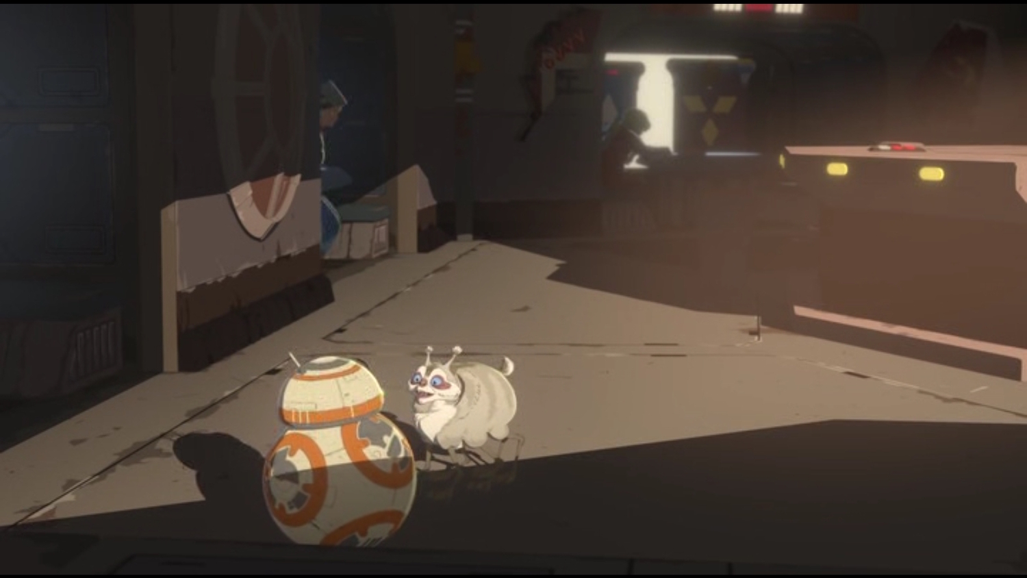 Йіґер просить BB-8 знайти Казуду, щоб дізнатися, чи він розібрався з новим комп'ютером наведення. Він їде на базар, де до нього пристає Баґґлі. Він шукає в барі, але і там Каза немає. Повернувшись в майстерню, він знаходить Каза, який просить його знайти Йіґера.
