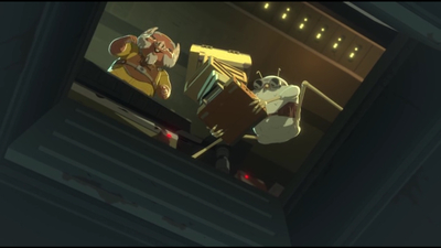 В крамничку Флікса і Орка приходить Нарб щоб пограбувати їх. Вони не чинять опору, а навпаки віддають всі гроші і починають віддавати цінні речі. Вони направляють Нарба щоб він виніс коробки, але під ним відчиняється таємний люк, що викидає його зі станції. Через декілька хвилин приходить Нод, брат Нарб, який його шукає. Механіки відправляють його за тим же курсом...