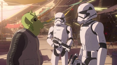 Перший Порядок почав розправляти крила на станції "Колос". Майже всі рейси відмінені. До того ж, на очах у Каза вони почали перевірки документів, шукаючи шпигуна. Каз починає панікувати, але Йіґер його заспокоює. Ніку приводить штурмовиків до них. Бо думає, що Казу подобається Перший Порядок. Вони перевіряють його і йдуть перевіряти Синару. Каз вирішує допомогти їй, навіть знаючи, що вона піратка. Він вивозить її до човників, але штурмовики починають гнатися за ним. Синара допомагає йому, але останні човники відлітають. Тоді Казуда радить звернутися до Ніку, бо він краще за всіх знає станцію. Він радить використати рятувальні капсули, а самому йому та BB-8 доводиться відволікати штурмовиків. Синара відбуває зі станції і її підбирають пірати.