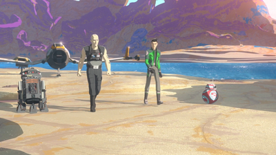 R5-G9, Ґріфф, Каз і CB-23 на розвідці пляжу.