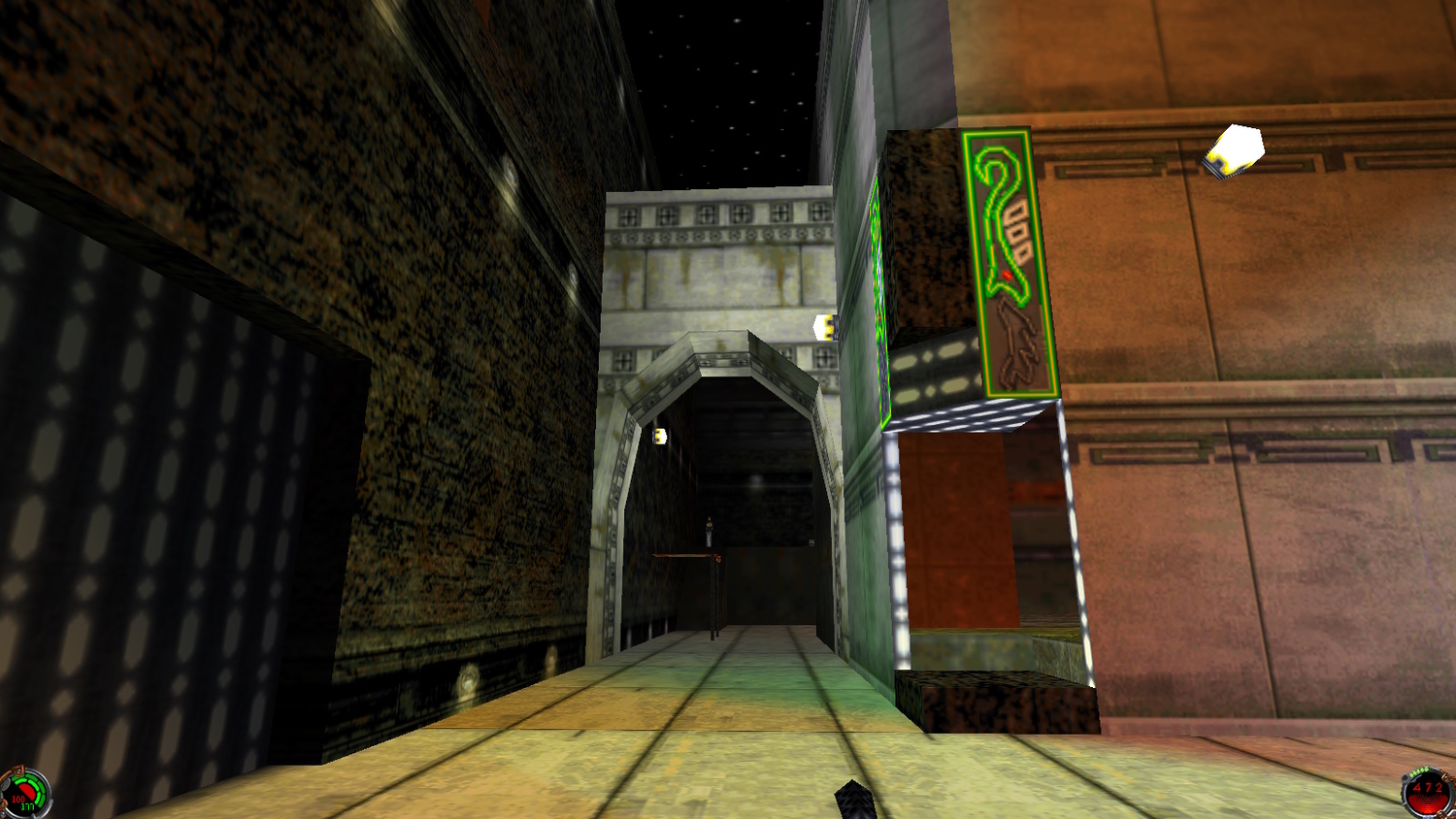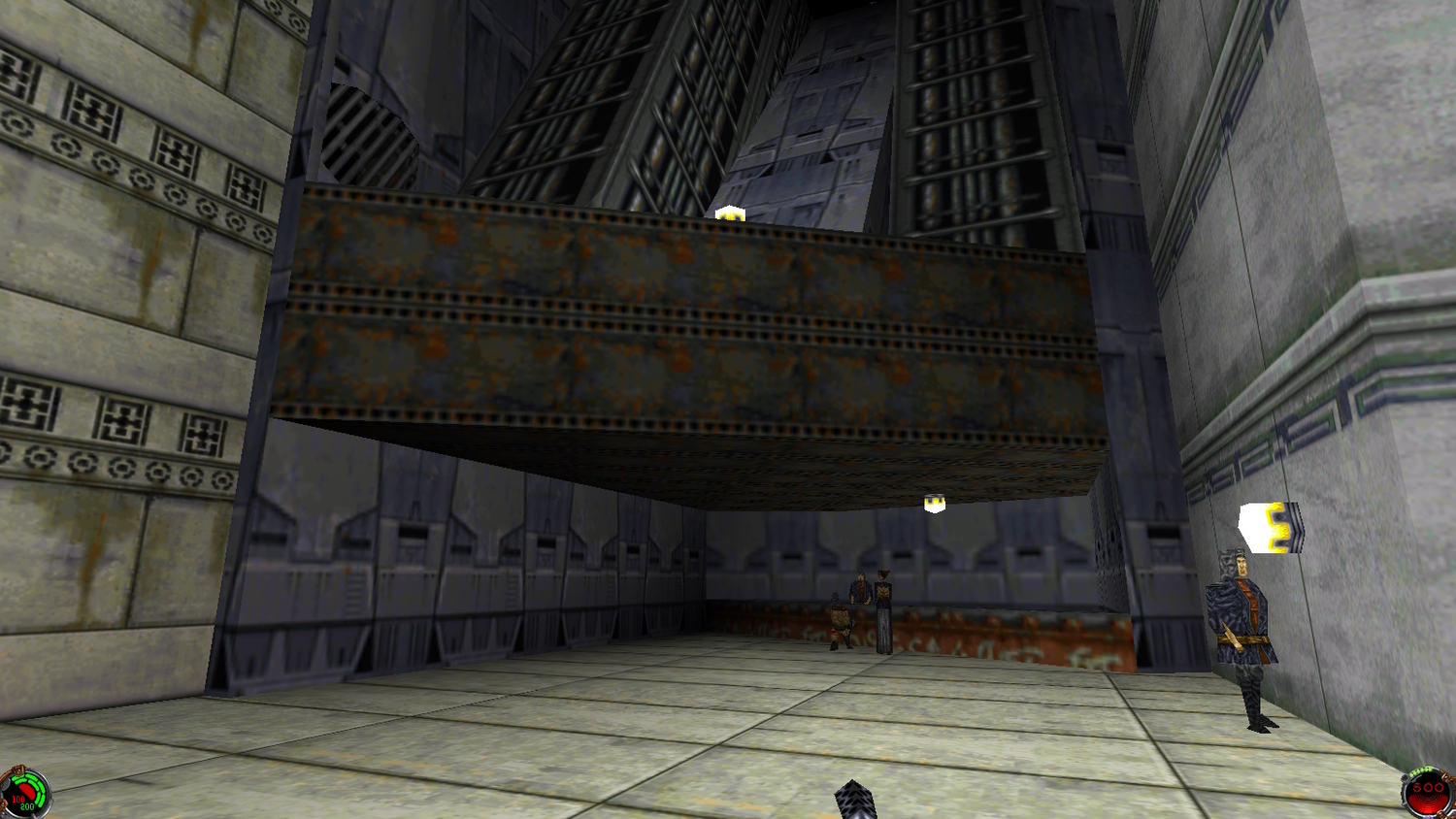 Пройшовши кантіни, ви скоро дійдете до мосту. За цим мостом буде пара трандошан і інші найманці, яких краще знищити з дистанції. Після цього повертайте ліворуч доки і ви побачите двоє дверей навпроти. Будьте обережні, бо ріг будівлі замінований. Також міна лежить на вході за лівими дверима. Розмінувавши їх підіймайтеся на другий поверх. Беріть блакитний ключ і тепер ви зможете відчинити праві двері. Будьте обережні, в кінці коридору на вас чатує трандошан. Пройшовши в вузький коридор, ви зможете увійти в кімнату де ховається Аброн Мар.