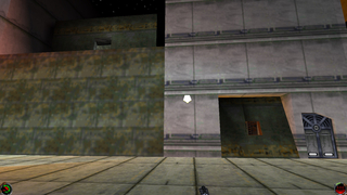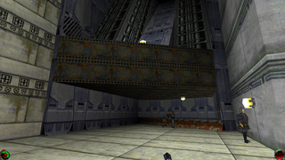 За рогом вас чекатиме довгий прохід вздовж ангарів. Будьте напоготові. Бо деякі найманці будуть атакувати вас з бокових проходів, даху в кінці проходу та ще й пара штурмовиків біля воріт атакуватиме вас. В першому правому і лівому ангарах немає нічого цікавого, а от в другому правому ви побачите як декілька угнотів лагодять Т-4. Якщо ви швидко натиснете важіль біля шлангів, що подають пальне і заскочите в Т-4, вона підніме вас в гору, де ви зможете стрибнути на карниз. Тут ви побачите решітку, яку можна прорізати, а за нею буде вентиляція, яка виведе вас на дах.